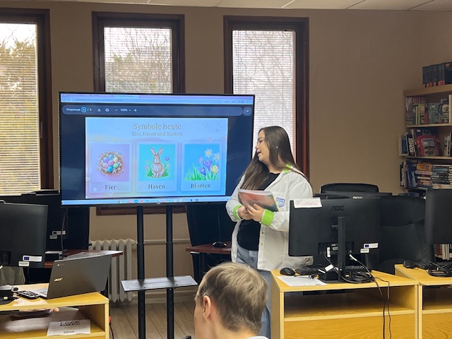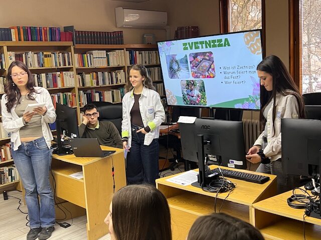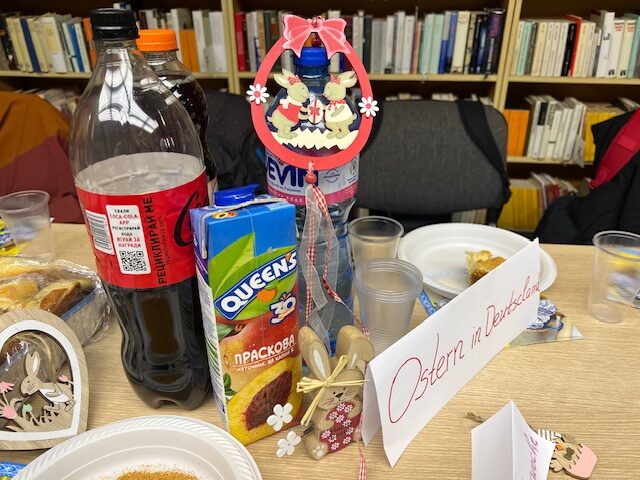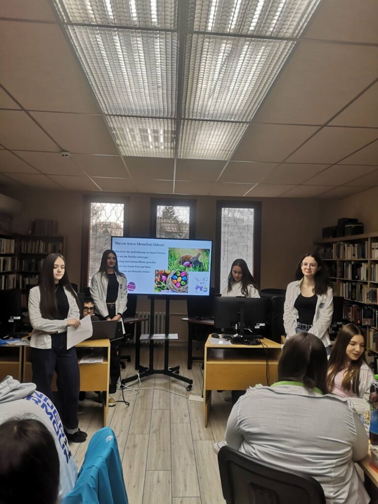 На 30 март 2026 г. учениците от 10″б” клас на III ПМГ “Акад. Методий Попов” заедно с учителката си по немски език г-жа Милена Петкова избраха да празнуваме заедно Великден, този толкова свещен за християните празник! Католици и православни празнуват Великден както в църквите, така и у дома. Датите за понякога съвпадат, а понякога се разминават. Великден е първата неделя след първото пролетно пълнолуние след 21 март. Тъй като католици и православни използват различни календари: Православната църква използва Юлианския календар, а католическата – грегорианския. Оттам произлиза и разминаването на датите за празника. Много разнообразни са традициите и обичаите за различните страни и народи, утвърдили се през годините. Учениците, работейки по групи, бяха изготвили презентации, които представиха пред всички нас: Какъв празник е Великден, как се празнува в Германия и България, кога и как се поставя началото на различните традиции, от къде идва името “Ostern” на немски език, какво е “Karwoche”. Факти и предания от интересни по-интересни! Коя е богинята Остера, какви са тези великденски зайци, що за традиция е “Боядисването на пъстри яйца”? Каква е традиционната трапеза по Великден? Много любопитни, пъстри презентации изпълниха пространството! Великденското агне присъства на трапезата и в България, и в Германия, но в различен вид. В България познаваме хубаво препечено агне, заемащо централната част на красиво украсената маса, докато в Германия агънцето е във вид на сладкиш. Шоколадови лакомства, козунак, забавления и игри, върбови клонки и много цветя, а кой ще събере на двора най много яйца, надничайки в храстите, зад тревичките и в най-скритите кътчета!?