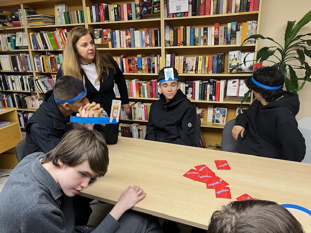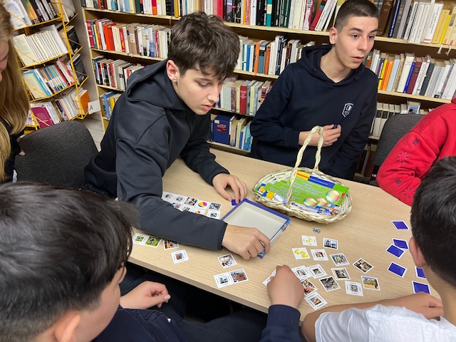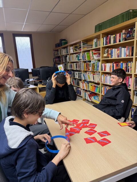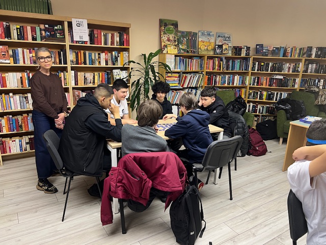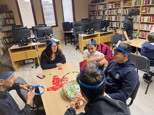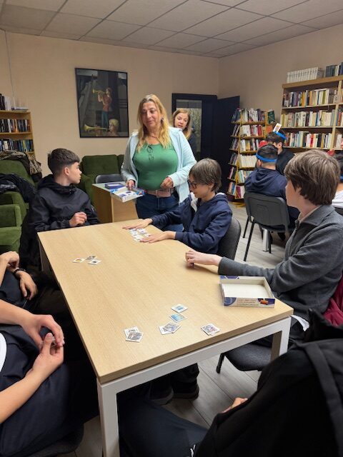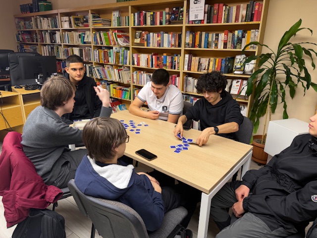 На 3.04.2026 г. учениците от 8″г” клас, специалност “Електронна търговия”, Професионална гимназия по компютърно моделиране и компютърни системи “Акад. Благовест Сендов”- Варна, изучаващи немски език се включиха в игралния следобед в Немска читалня. Децата се разделиха на групи по 3-4 човека и играха различни игри, свързани с обучението на немски език и развивайки уменията да се задават правилните въпроси, да се говори на изучавания език и да се упражни, наученото в училище, свързано с речниковия запас. Ние с госпожа Гергана Йорданова, която преподава по немски на групата, подпомагахме подгрупите, насочвахме учениците.